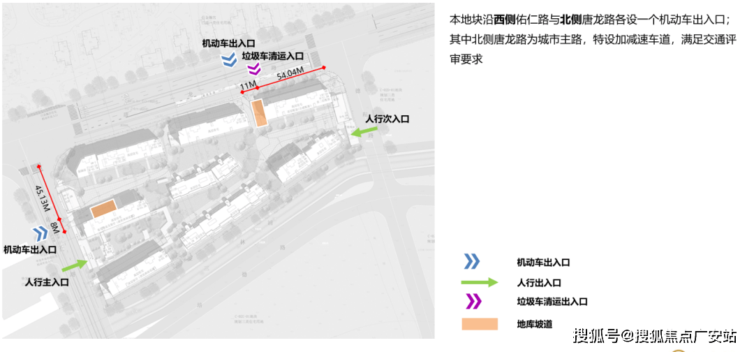 小区采用全人车分流设计,主入口位于西侧佑仁路,通行便捷有序。大门庄重大气,门头通过横向感拉槽与奢石景墙巧妙结合,搭配序列感植物,营造秩序感与昭示性。主入口三进式礼序,仪式感与功能性兼备。一进为酒店式落客和车马厅,以礼遇之姿迎接业主归家,大堂尽显尊崇;二进静谧水院、会客廊架、下沉庭院相互呼应,形成意境洄游空间;三进风雨连廊相伴,带来伴水归家惬意体验。次入口在东侧,方便出行。