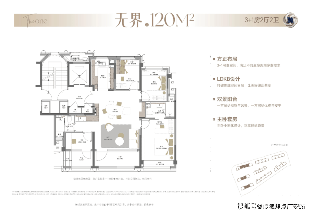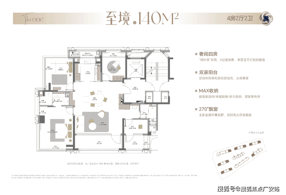 1、户型设计方正有序,动静分区合理,打造独立私密空间。南向大尺度开间约12.4米,尽享明媚阳光;面宽约4.8米的超大宽厅,餐客厅一体设计成大方厅,满足复合场景需求,尽显豪宅风范。LDK(餐客厨)一体化设计,实现南北通透;主卧面宽升级至约3.6米,儿童房尺度升级至约3米,北卧面宽也远超市面产品,分别升级至约2.8米和约2.6米。2、4大MAX收纳空间:餐厅配备大通顶柜,实现高效收纳;厨房采用U型设计,极致收纳空间包括天使拉篮(顶部反光板)、多功能墙面收纳及墙面调味篮,并配置家政柜,卫生间提供个性化收纳方案。3、双层水处理系统:前置过滤与RO反渗透末端直饮双重保障,守护全家用水健康。4、5大全景飘窗:超7平飘窗空间,后期可DIY设计,视野开阔,尽享震撼美景。5、全屋智能交互:声控、触屏、手机APP三种交互模式随心选择,全屋WiFi无缝覆盖,契合年轻人理想生活方式。6、国际一线品牌交付:大金空调地暖、厨房是博士五件套:冰箱、洗碗机、油烟机、三眼灶、蒸烤一体机等高端品牌一应俱全。